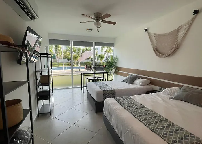 To enjoy your vacation in Cancun, stay at the 35 m² Departamento Cancun Santuario Desatanudos apartment, which is approximately a 25-minute walk from the Tortugranja Turtle Farm and 2.5 km from Caracol Beach. This 1-bedroom apartment features a terrace with a swimming pool.
